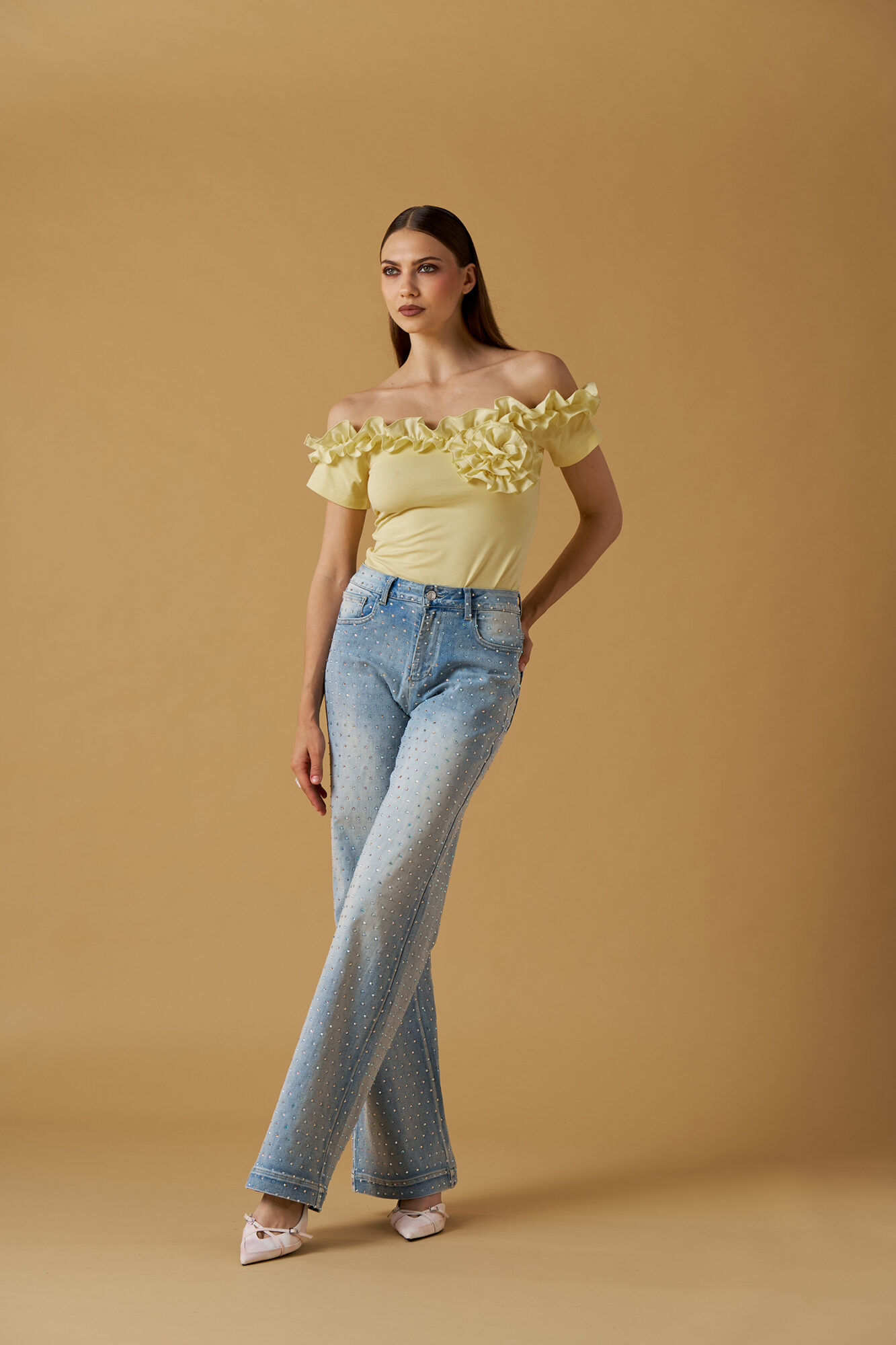 T-shirt spalle fuori con fiore no secrets